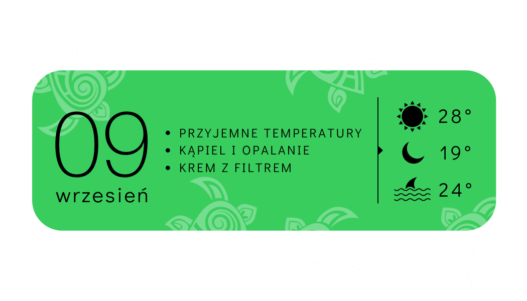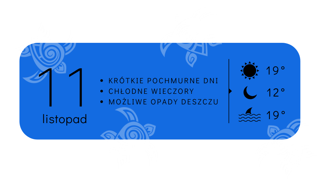 Sezon letni już majaczy w tle… Wyspa zapada powoli w zimowy sen. Życie zwalnia, dni są coraz krótsze a za oknem pojawia się coraz więcej deszczowych krajobrazów (przeciętnie występuje około 10 dni deszczowych)! Utrzymuje się jednak przyjemna temperatura powietrza – cały czas możemy odczuć ok. 18-20 stopni Celsjusza. Wieczory podobnie jak w październiku są „bardzo rześkie”- zalecamy długie spodnie, bluzę i lekką kurtkę. Ci którzy jeszcze nie są gotowi na pożegnanie z latem korzystają z ostatnich kąpieli morskich – temperatura wody jest praktycznie taka sama jak powietrza.
