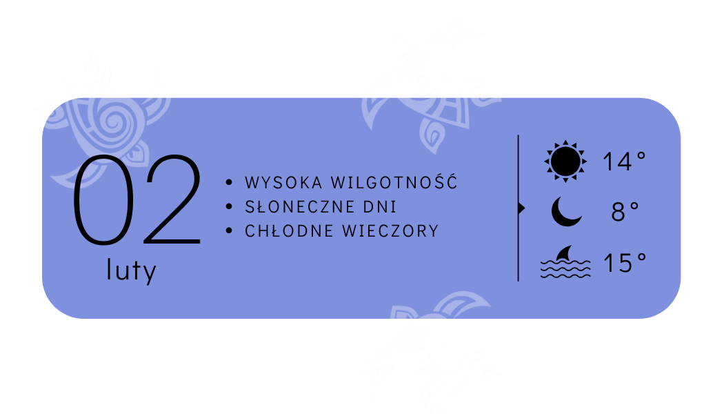 W Lutym na Zakynthos mamy już znacznie mniej deszczowych dni, a słońce pokazuje się coraz częściej i zostaje z nami na dłużej w ciągu dnia. Pogoda bywa zdradliwa: wychodzisz rano w ciepłej kurtce, a dochodzisz już do pracy w samym sweterku – zanim się obejrzysz, kurtkę masz z powrotem na sobie i tak w kółko. Wieczorami wciąż obowiązkowe rakomelo lub grzane wino, które pomaga utrzymać odpowiednią temperaturę ciała. Słońce towarzyszące przez większość czasu przygotowuje pomału na Marcową wiosnę!