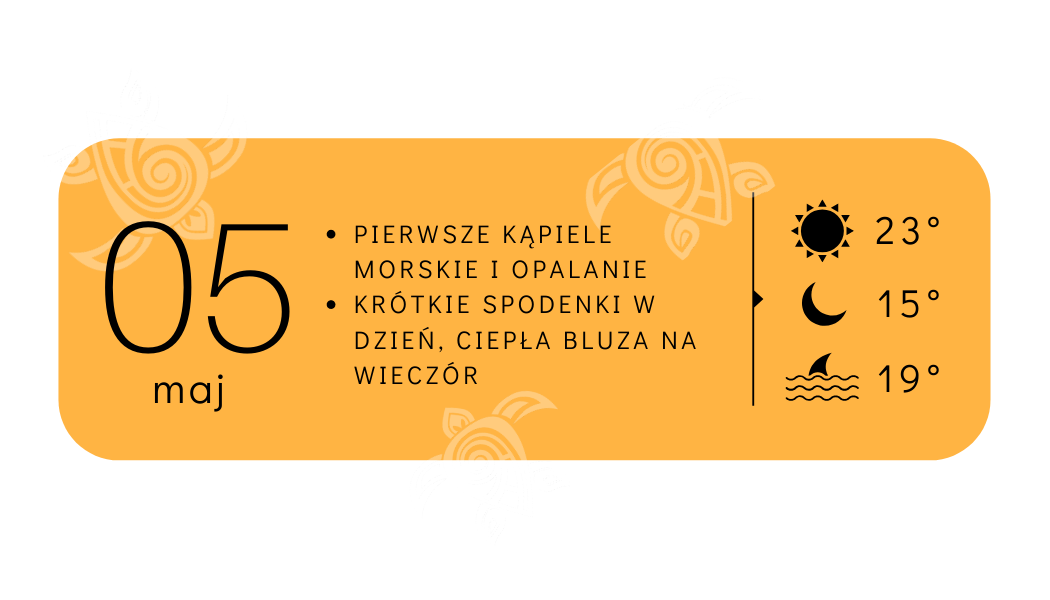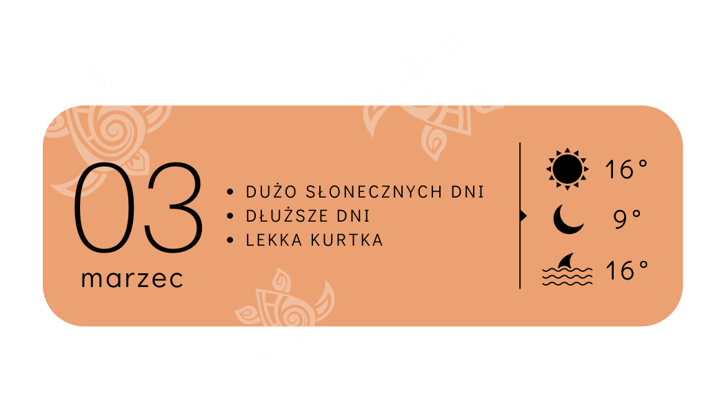 w Marcu pozwala już na pierwsze kąpiele w morzu – dla odważnych! Spacerując po plaży spotkacie wielu lokalnych mieszkańców (zwłaszcza starsze Panie), którzy ochoczo pluskają się w wodzie…