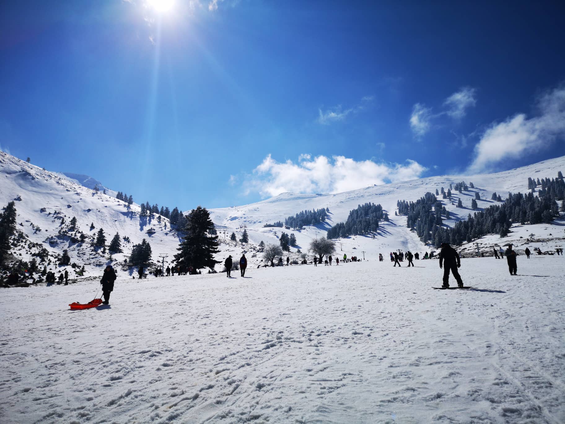 Nie wszyscy Grecy zdążyli przekonać się do sportów zimowych. Na stok przyjeżdżają nie tylko fani opisanych powyżej sportów zimowych, ale i osoby które po prostu chcą się pobawić w śniegu, lepić bałwany, jeździć na sankach albo po prostu napić się grzanego wina na leżaku w zimowej scenerii. Przyjeżdżają tutaj rodziny i pełne autokary grup zorganizowanych. Goście mają do dyspozycji dwie chaty serwujące kawy, herbaty, gorące czekolady ale i również souvlaki z grilla czy wspomniane grzane wino (oczywiście wino przetestowaliśmy specjalnie dla Was – było przepyszne!).