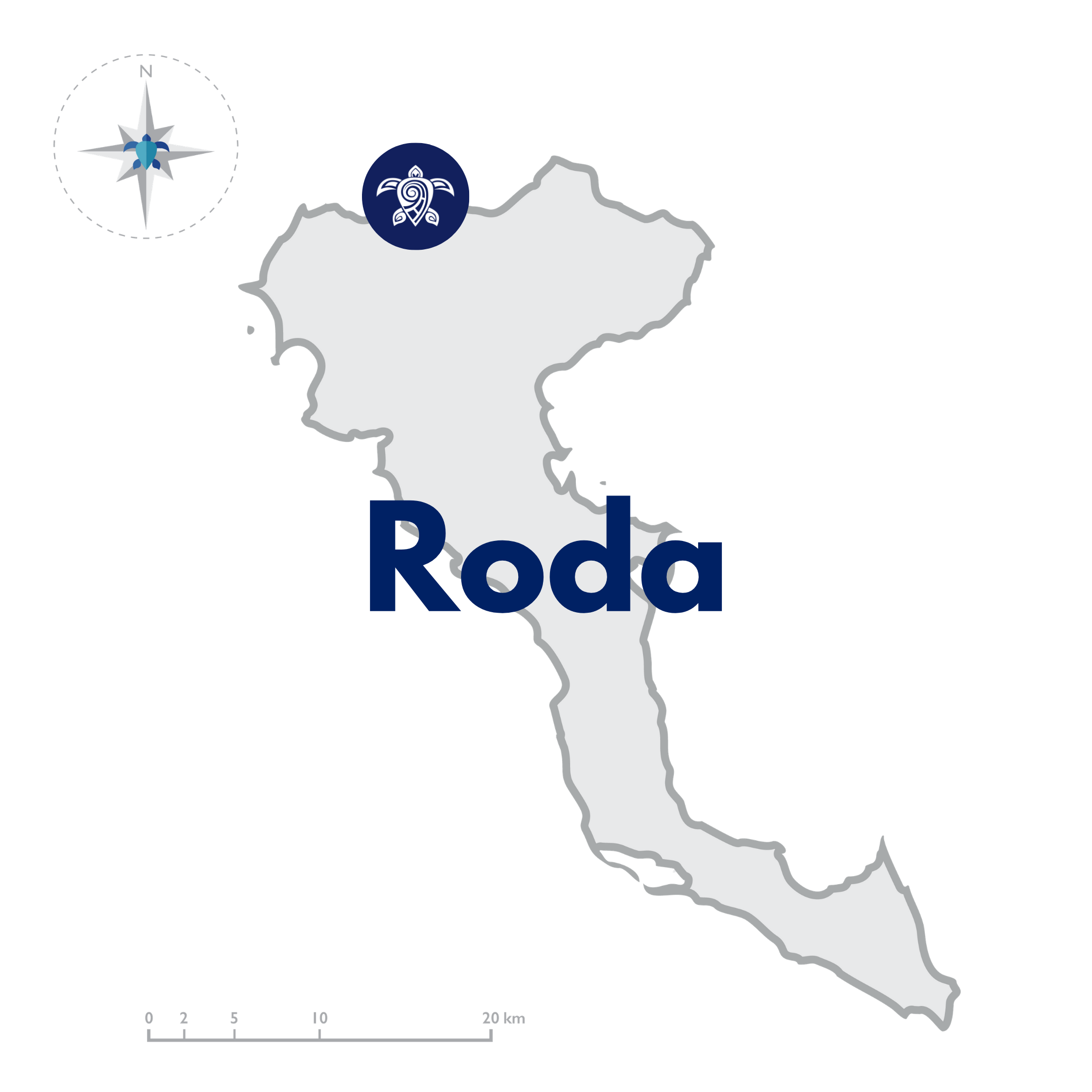 Kiedyś była to osada rybacka, która z biegiem lat rozrastała się wraz z rozwojem turystki. Dzisiaj to niewielki kosmopolityczny kurort, w którym znajdziemy tawerny, sklepy z pamiątkami i kilka barów. Spacerowicze mogą korzystać również z promenady, a fani długich spacerów zakocahją się w kilkumetrowej piaszczystej plaży! Plaża dociera do sąsiedniej miejscowości Acharawi. W szczególności polecamy spacery zwłaszcza wieczorową pora – panuje tu niesamowity klimat! Na samej plaży znajdziemy oczywiście serwis plażowy i oferty sportów wodnych. Roda to idealne połączenie tradycji i nowoczesności. Jest to również dobra baza wypadowa do pobliskich miejscowości turystycznych takich jak Kassiopi, Sidari, Acharawi.