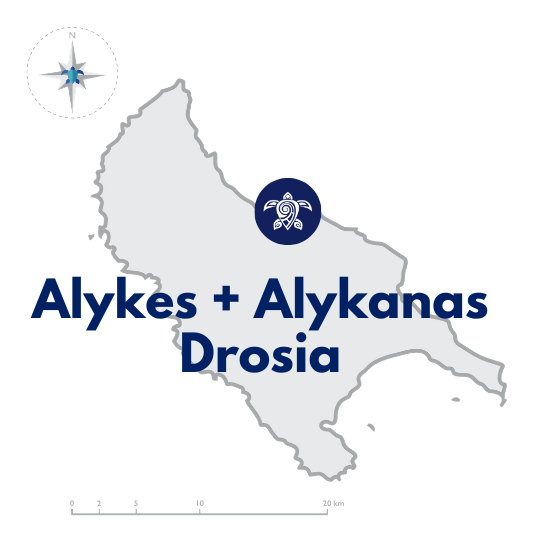 Na południe od Alykes i Alykanas mamy jeszcze jedną miejscowość. Drosia oferuje również prywatne zakwaterowanie lub możemy wybrać jeden z nowopowstałych hoteli (2019 r) który cieszy się dobrą opinią.